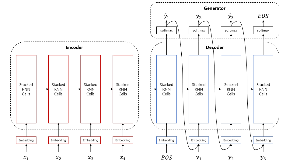 - 디코더의 hidden state를 softmax를 통해 multinoulli 분포로 변환
