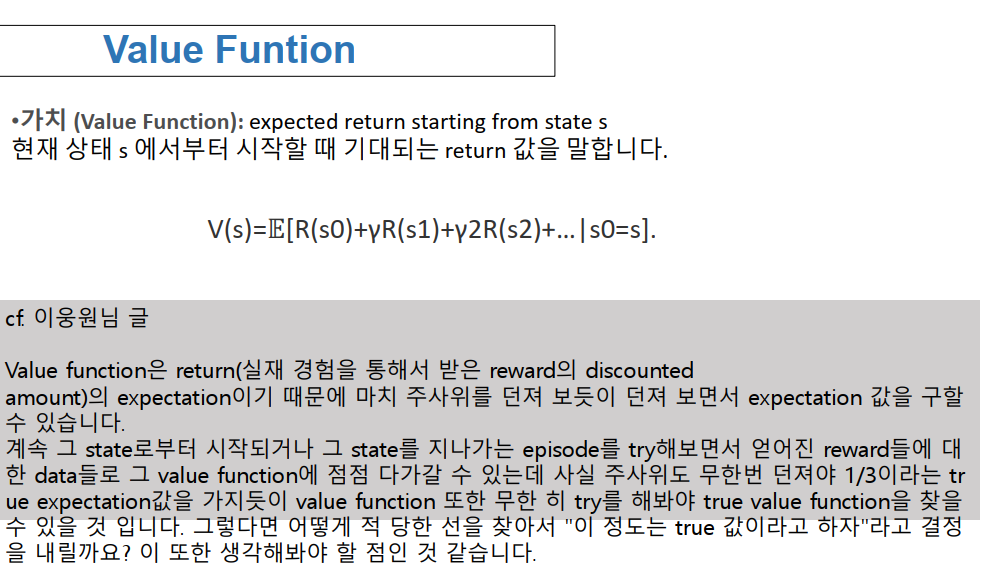 value function을 정의했으면 판단지표가 설정이 된건데 밸류펑션을 직접적으로 정의를 하는것이