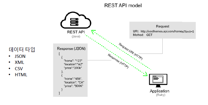 application(내컴퓨터) : HTTP라는 프로토콜을 통해Rest api에 주소를 요청