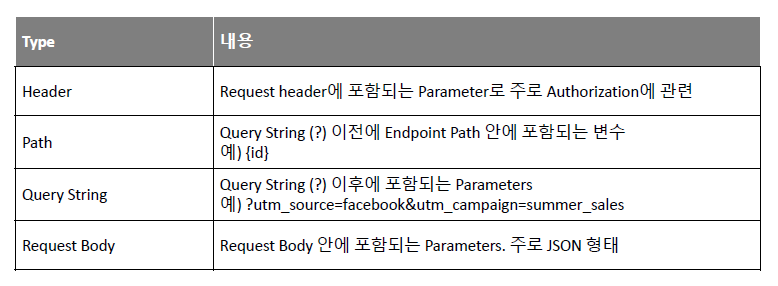 -> Endpoint를 통해 request 할 때 같이 전달하는 옵션들